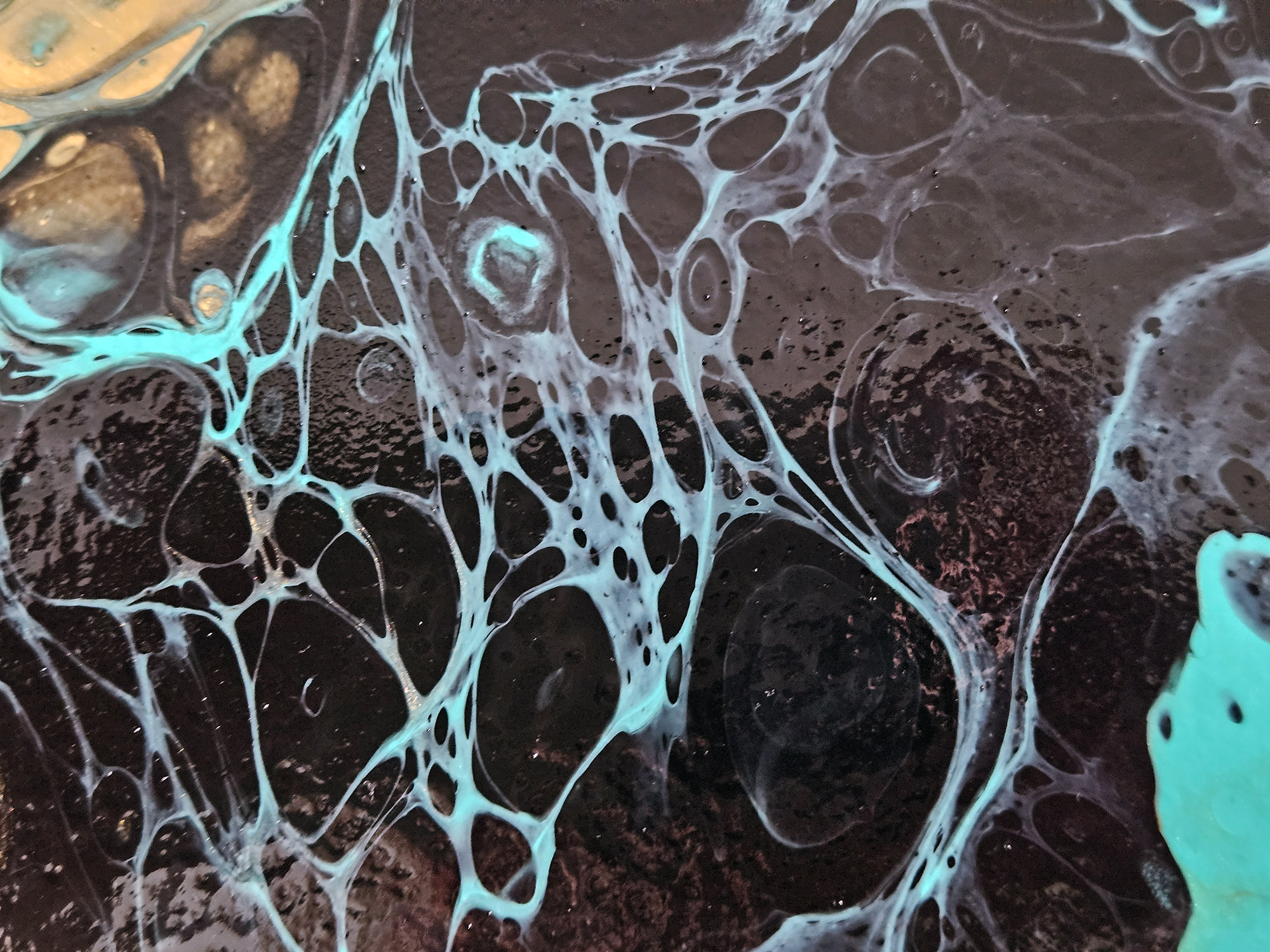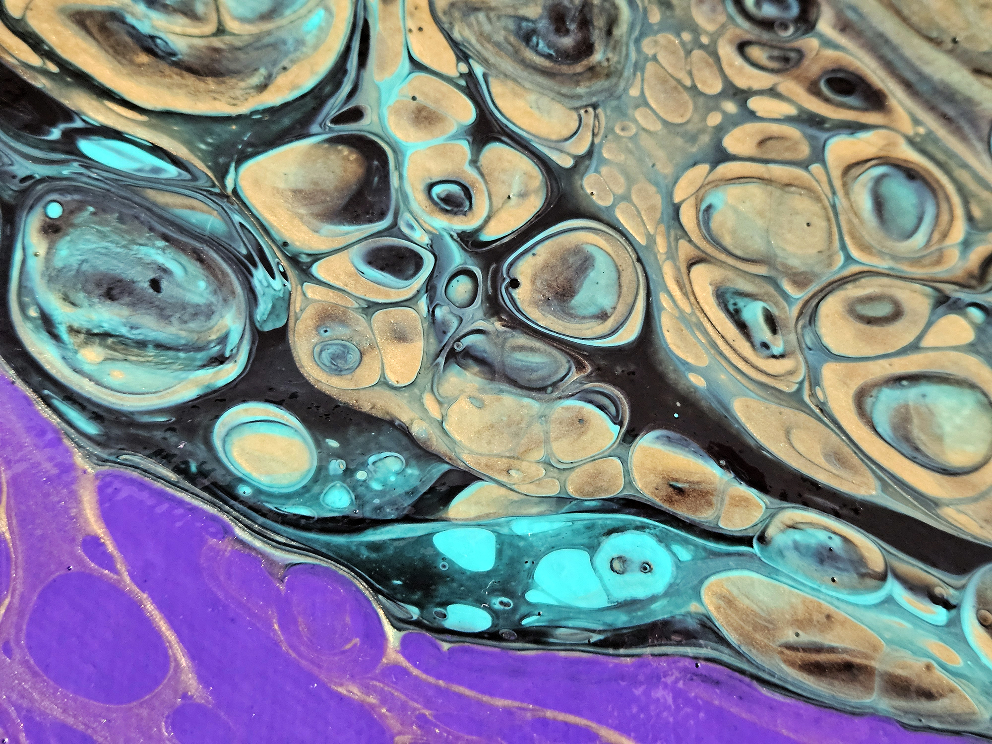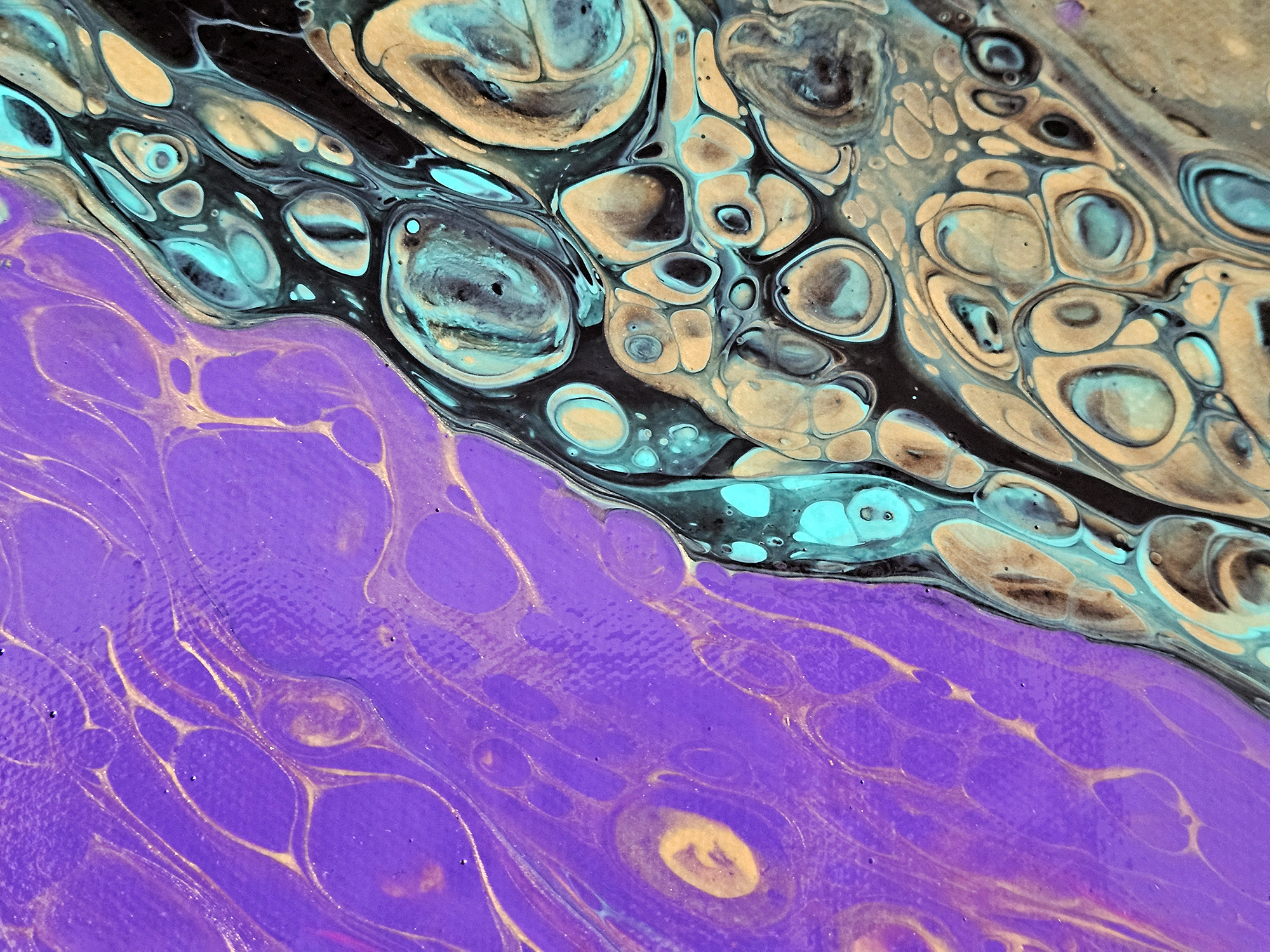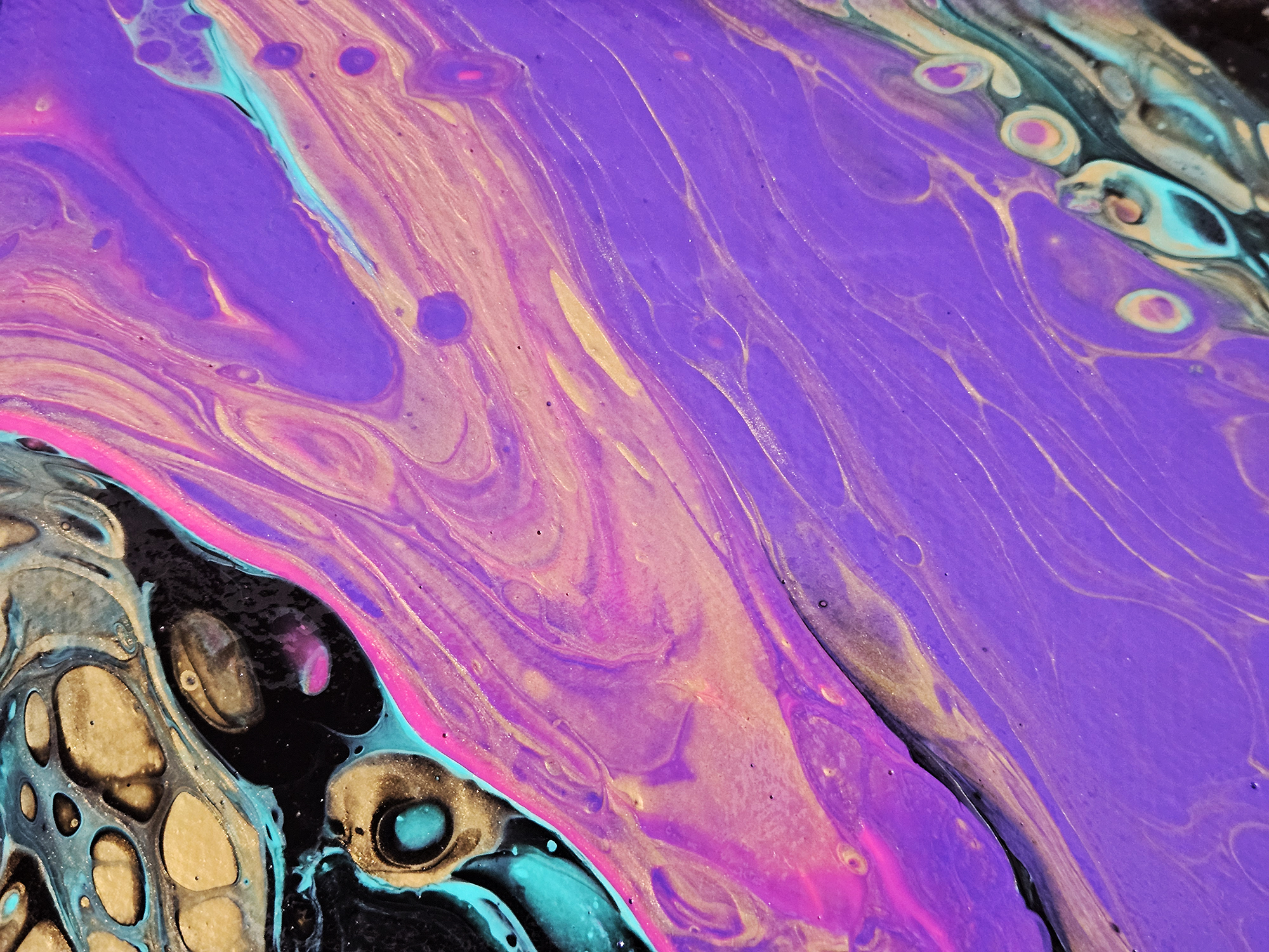 This acrylic painting is inspired by unicorns. Incorporating a bold blend of fluorescent pink, purple, bright aqua green, black and gold. Each piece is signed and comes with a certificate of authenticity.